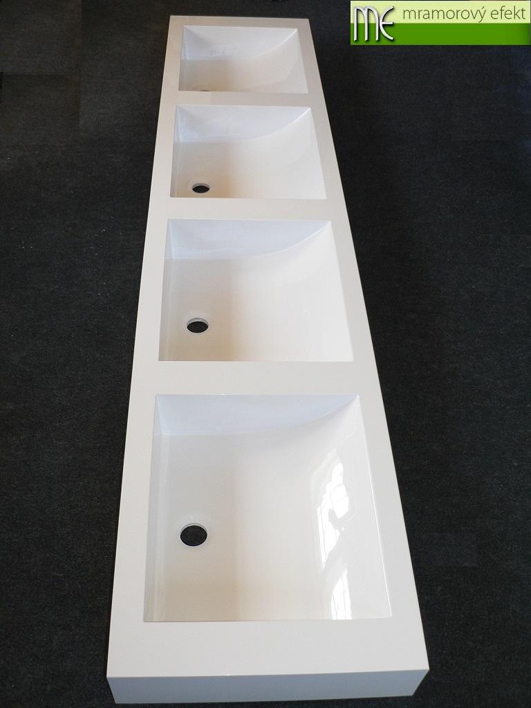 Für die Firmenwaschräume eines Kunden in Thüringen haben wir eine Waschtischplatte mit vier rechteckigen Waschbecken des Typs Massive 42 hergestellt und geliefert.